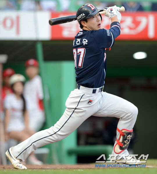 그런 선수가 빠져나갔으니 두산은 걱정이 컸다. 검증되지 않은 박건우와 김재환 중 한 명이 김현수의 절반만 해줬으면 하는 바람을 갖고 있었다. 하지만 둘이 동시에 터졌다. 나란히 커리어하이 시즌을 만들고 있다. 김재환은 테임즈(NC 다이노스)와 홈런왕 경쟁을 하고 있고, 박건우는 톱타자로 완벽히 정착했다.