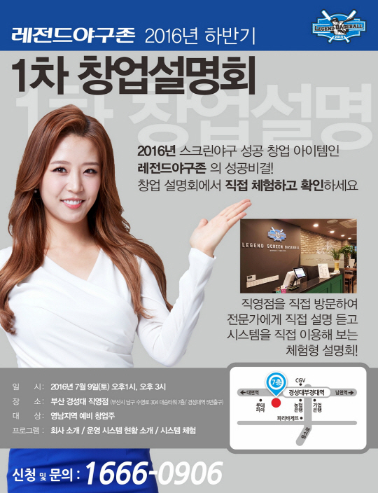 레전드야구존(대표이사 오동석)이 9일 오후 1시와 3시에 부산 경성대점에서 창업설명회를 개최한다.