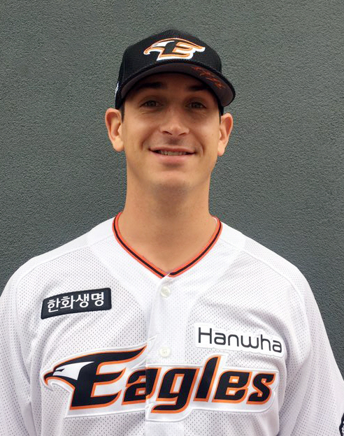 ◇한화 이글스가 현재 텍사스 레인저스에 소속돼 있는 좌완 투수 에릭 서캠프를 새 외국인 선수로 영입했다. 한화 유니폼을 입은 채 웃고 있는 서캠프. 사진 제공=한화 이글스