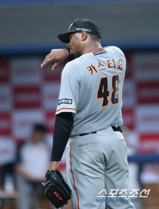 카스티요는 2회 땅볼로 2사 1,3루 위기를 모면하고 4회 삼자범퇴를 만들 때는 최고시속 160㎞ 강속구의 장점을 극대화하는 모습이었다. 하지만 3회 무사 1,2루에서 삼성 3번 이승엽을 몸에 맞는 볼로 출루시켜 무사만루 위기를 허용하고, 6회 1사후 볼넷 2개로 1사만루에 몰렸다. 잘 던지다가 갑자기 흔들린다.