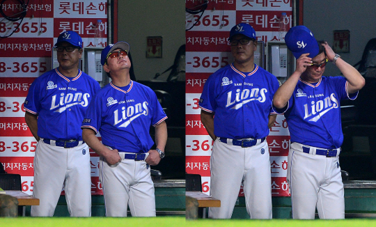 하지만 온갖 악재가 동시다발로 터져나오면서 팀은 급격히 기울었다. 7위에 머물다, 8위를 거쳐 10위까지 계속 미끄러졌다. 이 와중에 경기 내용은 절로 한숨을 만들었다. 6월말 롯데를 상대로 3경기 연속 끝내기 패배를 당한 것은 KBO리그 역사에 남을만한 사건이다. 6월초에는 한화를 상대로 홈에서 3경기 연속 1점차 패배를 당하기도 했다. 지난 주말 한화와의 3연전은 삼성의 현주소, 민낯을 그대로 드러냈다. 첫날 한화 송광민에게 결승 3점홈런을 내주고 주저앉았다. 만루찬스에는 침묵하고, 안타는 이어지지 못하는 섬이었다. 둘째날은 1-4로 뒤지다 8회 극적으로 동점을 만들었지만 뒤집는 힘은 없었다. 셋째날은 에이스 윤성환이 데뷔후 최악피칭을 했다. 5이닝을 채우지 못하고 8실점했다. 개인통산 최다인 한경기 8개의 4사구를 남발했다. 제구력의 마술사라는 애칭이 무색할 정도였다.