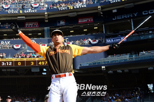 홈런더비 신기록도 세웠다. 1라운드부터 결승까지 총 61개 아치를 그며 2005년 보비 아브레우의 41홈런을 20개나 넘어섰다. 또 497피트(약 151m)짜리 홈런을 두 개나 때리는 등 이날 나온 최장 거리 홈런 1∼10위 기록을 독식했다. 그는 "올스타전 홈런더비를 보며 꿈을 키웠다. 이젠 내가 아이들에게 좋은 추억을 안긴 타자가 됐다"고 감격해 했다.