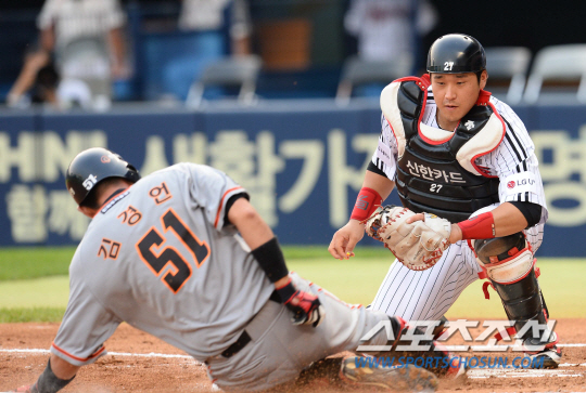 종아리 부상으로 고생했던 34세의 김경언에게 2루를 지난 이후의 거리는 마치 가파른 오르막길처럼 느껴졌을 것이다. 그래도 김경언은 멈추지 않았다. 이윽고 3루를 돌았다. 홈으로 공이 중계되고 있었지만, 그래도 달렸다. 이미 홈에 들어온 정근우는 열심히 송구 방향을 알려주며 슬라이딩 신호를 보냈다.