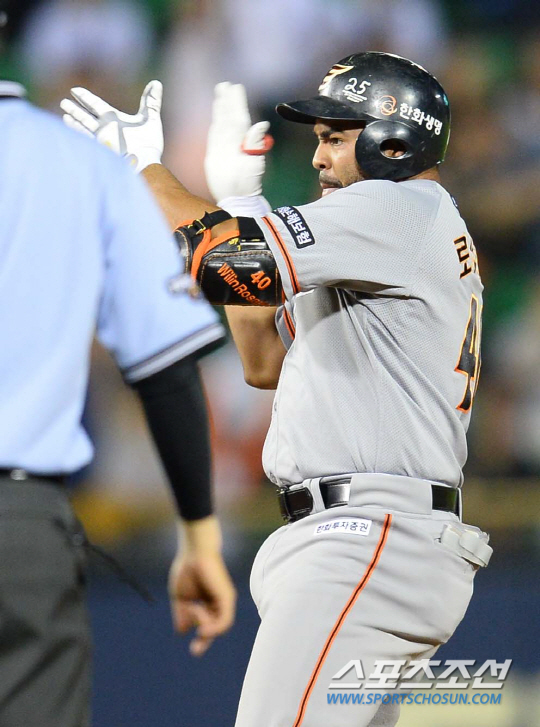 그 사이 2명의 주자가 모두 홈을 밟았다. 김경언도 3루를 돌아 홈까지 쇄도하며 '인사이드 더 파크 홈런'에 도전했으나 간발의 차이로 홈에서 태그아웃됐다. 합의판정까지 시도했으나 결과는 바뀌지 않았다.