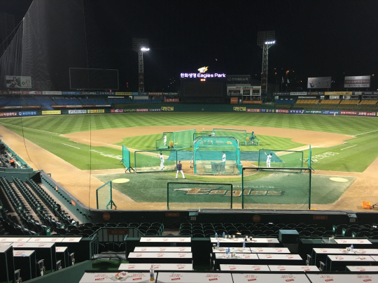 3명의 타자가 동시에 배팅볼 투수와 배팅볼 머신의 볼을 때렸다. 양성우와 장민석, 주현상이 특타 대상 선수들이었다. 김 감독은 시종일관 뒤에서 손짓으로 선수들의 스윙폼과 밸런스를 체크해줬다. 최근 들어 한화는 야간 특타를 거의 실시하지 않았다. 이날 한화는 6안타에 그쳤고, 마무리 정우람이 3실점하며 9회초에 무너졌다.