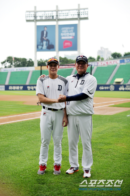 4월26일 잠실 SK전에서 켈리 공을 때려 결승타를 쳤을 때 올 시즌 가장 크게 칭찬한 것 같다. '좋은 베팅이었다. 앞으로 야구하는데 큰 도움이 되는 장면일 것이다'고 등을 두드려줬다. 6월21일 잠실 kt전에서 프로 첫 홈런을 때렸을 때는 케익을 샀다. 장초 하나만 달라고 해서 밤 11시 식사하며 나눠 먹었다. 그 때는 코치가 아닌 아버지로서 첫 홈런 추억을 공유하고 싶었다.