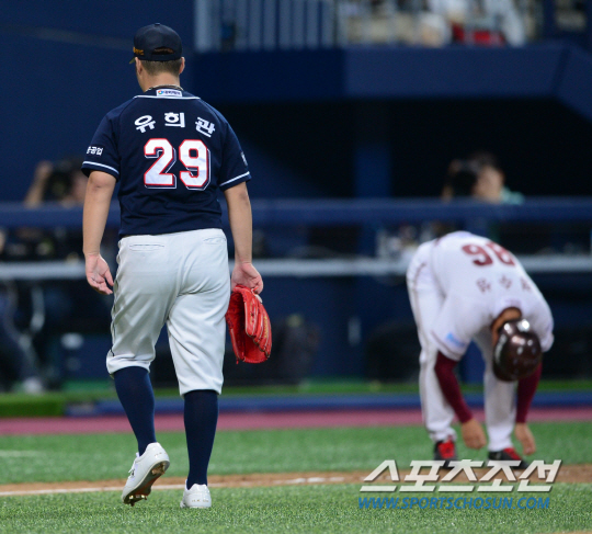 유희관은 1회초 팀타선의 도움으로 3점을 등에 업고 등판했다. 마음이 홀가분할 법도 했지만 초반부터 흔들렸다. 1회 대니돈과 김민성에서 연이어 적시타를 얻어맞고 2실점했다. 빗맞은 안타까지 나왔다. 2회엔 9번 강지광에게 데뷔 첫 홈런을 허용했다. 3회를 병살타로 어렵사리 넘긴 유희관은 4회 들어 강지광에게 좌전안타, 1번 서건창 우전안타, 2번 고종욱에게 연이어 우전안타를 내주고 또 1실점했다. 무사 1,3루 위기에서 마운드를 조승수에게 넘겼다. 조승수가 윤석민에게 만루홈런을 얻어맞아 승계주자는 모두 홈을 밟았다.