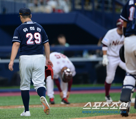유희관은 1회초 팀타선의 도움으로 3점을 등에 업고 등판했다. 마음이 홀가분할 법도 했지만 운도 따르지 않았다. 1회 대니돈과 김민성에서 연이어 적시타를 얻어맞고 2실점했다. 빗맞은 안타도 나왔다. 2회엔 9번 강지광에게 데뷔 첫 홈런을 허용했다. 3회를 병살타를 이끌어내 어렵사리 넘겼지만 4회도 강지광이 문제였다. 결과는 좌전안타. 이후 1번 서건창 우전안타, 2번 고종욱에게 우전안타를 내주고 또 1실점했다. 무사 1,3루 위기에서 마운드를 조승수에게 넘겼다. 조승수가 윤석민에게 만루홈런을 얻어맞아 승계주자는 모두 홈을 밟았다.
