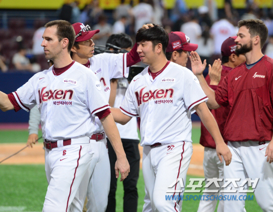 신재영은 "못 이긴지가 35일이나 됐나요. 진짜 오래됐네"라며 웃었다. 신재영은 두산을 처음상대했는데 첫만남에서 이겼다. 전구단 상대승리까지는 SK만 남았다. 신재영은 "승리도 좋았지만 오늘은 체인지업을 7개를 던졌다. 점점 완성되어 간다. 이전 4경기는 체인지업을 많이 던지지 못했다. 떨어지는 변화구, 왼쪽타자 바깥쪽으로 흘러나가는 체인지업의 필요성을 절감하고 어떻게든 던지려 했다. 체인지업을 더 많이 던진 것이 가장 값지다"고 말했다. 만루포를 쏘아올린 윤석민에 대해선 "맨날 내가 나오면 (윤)석민이 형이 잘 치지 못했다. 오늘은 간만에(웃음)에 쳤다. 매번 병살타만 치더니(옆을 지나가는 윤석민을 흘겨보고 웃는다). 타자들이 잘 쳐줄거라 믿었고, 1회 3점을 줬지만 어떻게든 버티려 했다"고 말했다. 신재영은 "승을 추가하는 것도 좋지만 시즌 끝까지 버텨나갈 것"이라고 말했다. 고척돔=박재호 기자 jhpark@sportschosun.com