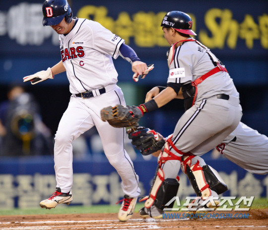 그런데 심판실로 가서 TV 리플레이를 보며 합의판정을 진행한 나광남 1루심은 그대로 세이프를 선언했다. 왜 그랬을까. 나 심판원으로부터 이에 대한 설명을 들은 김태선 기록위원은 "태그에 따른 아웃-세이프 합의판정은 아웃이지만, 홈충돌 방지규정에 따라 세이프를 선언했다"고 설명했다. LG 포수 박재욱이 김재호의 주루를 방해했다는 것이다.