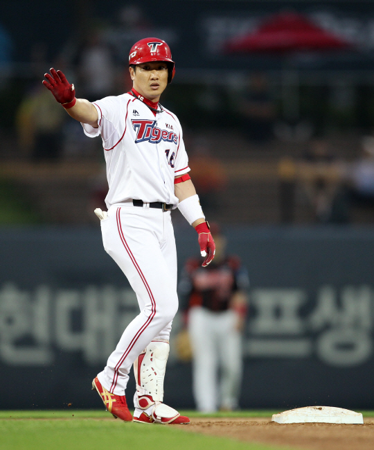 이런 모습에 대해 KIA 김기태 감독도 매우 흡족해하는 눈치다. 김 감독은 2일 광주 기아 챔피언스필드에서 한화 이글스와의 홈경기를 앞두고 김주찬에 관해 언급했다. 이에 앞서 김주찬은 그라운드에 나와 가볍게 티배팅 훈련을 진행했다. 힘차게 배트를 휘두르고 있지만, 사실 김주찬은 부상에서 완전히 회복된 상태는 아니다. 지난 7월22일 광주 NC전에서 상대투수 정수민이 던진 공에 왼쪽 견갑골을 맞아 미세골절상을 당했다. 이후 불과 12일밖에 지나지 않았다.
