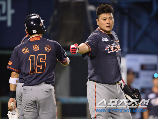 하지만 kt도 가만있지 않았다. 2회말 문상철이 2타점짜리 좌전 적시 2루타로 2-4를 만든 뒤 3회말에는 박경수의 우전적시타가 터지며 3-4까지 따라붙었다. 한화 벤치에 다시 긴장감이 맴돌았다. 결국 한화 김성근 감독은 3-4로 쫓기던 3회말 1사 만루 역전 위기에서 선발포수 차일목을 베테랑 조인성으로 교체하는 강수를 뒀다. 볼배합에 문제가 있다고 판단한 것. 이 카드가 성공적이었다. 조인성은 선발 윤규진과 호흡을 맞춰 전날 끝내기 홈런을 친 윤요섭에게 2루수 앞 병살타를 이끌어 내 1점차 리드를 지켜냈다.