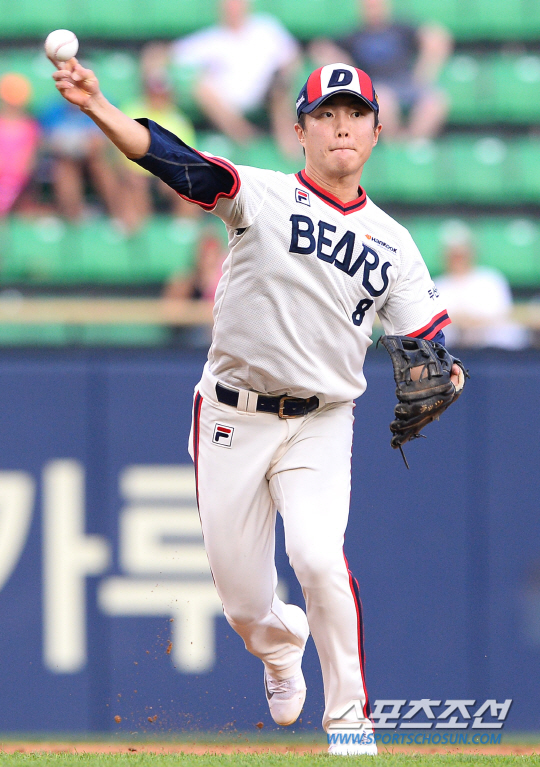 물론 까마득한 얘기다. 이제 막 '그 수비를 잘하는 두산 8번 달고 있는 선수'로 이름을 알리고 있을 뿐이다. 하지만 새벽 5시까지 잠들 수 없었던 오기와 패기를 앞세워 단 한 차례도 2군에 내려가지 않은 점은 인정해야 할 것 같다. 그것도 유격수, 2루수, 3루수 등이 모두 프리미어12 국가대표 출신인 두산에서 말이다.