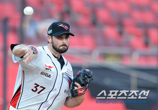 9일 수원 케이티위즈파크에서 KBO리그 kt 위즈와 넥센 히어로즈의 경기가 열렸다. kt 밴와트와 넥센 신재영이 선발 맞대결을 펼쳤다. 1루 견제구를 던지고 있는 밴와트. 수원=송정헌 기자 songs@sportschosun.com/2016.08.09