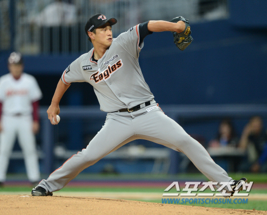 한화 이글스와 넥센 히어로즈의 2016 프로야구 경기가 29일 고척스카이돔에서 열렸다. 한화 선발투수 윤규진이 힘차게 공을 던지고 있다. 고척돔=정재근 기자 cjg@sportschosun.com