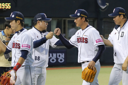 그래서일까. 김 감독 모자 창 안쪽에는 자신의 등번호 '88'과 정재훈의 '41'이 나란히 적혀 있다. 누구도 볼 수 없고, 중계 카메라에 잡히지도 않는 곳이다.