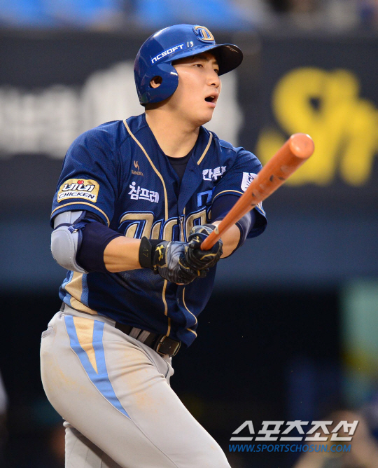 나성범은 1일 부산 롯데전, 2-2로 팽팽한 7회 2사에 좌측 펜스를 직격하는 적시 2루타로 2타점을 올렸다. 그는 롯데 세번째 투수 윤길현의 바깥쪽 변화구를 정확한 타이밍에 밀어쳤다.