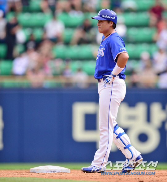 이번 2연전에서는 KBO리그에서 가장 큰 잠실 구장에 발목이 잡혔다. 담장을 직접 때리는 큼지막한 타구를 두 방이나 날린 것이다. 먼저 3일이다. 이승엽은 2-3으로 뒤진 9회 선두 타자로 나갔다. 마운드에는 두산 마무리 이현승. 볼카운트 2B2S에서 139㎞ 직구를 제대로 때렸다. 맞는 순간 큰 것임을 직감할 수 있었다. 그러나 중견수 정수빈이 담장에 부딪히면서 포구에 성공했다. 류중일 삼성 감독이 "넘어간 줄 알았다"고 말한 타구다.