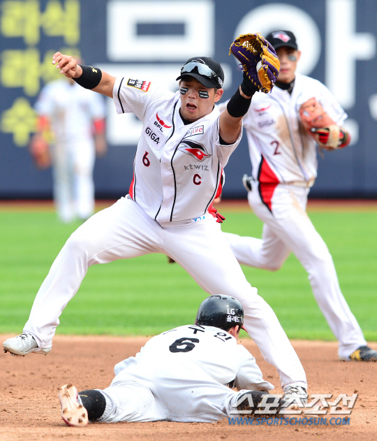 4일 수원 케이티위즈파크에서 KBO리그 kt 위즈와 LG 트윈스의 경기가 열렸다. kt 피어밴드와 LG 우규민이 선발 맞대결을 펼쳤다. LG 3회 2사 1루에서 손주인이 2루 도루를 시도했으나 kt 박경수 2루수에게 태그아웃을 당하고 있다. 수원=송정헌 기자 songs@sportschosun.com