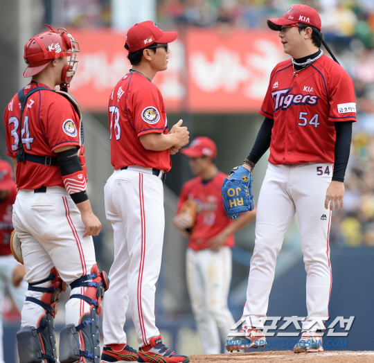 KIA 양현종이 볼넷을 남발한 끝에 패전의 위기를 안고 강판했다.