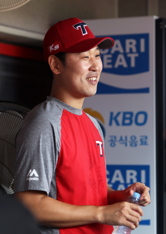 30일 SK전에 앞서 1군 엔트리에 등록한 KIA 윤석민이 광주 기아챔피언스필드 3루 홈팀 덕아웃에서 취재진을 만났다. 사진제공=KIA 타이거즈