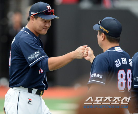 최근에는 3번으로 출전하며 팀 연승을 이끌고 있다. 지난 11일 고척 넥센 히어로즈전부터 테이블세터 바로 뒤에 이름을 올리더니, 3번으로 나선 6경기 성적이 상당하다. 23타수 11안타 타율 4할7푼8리에 5홈런 12타점. 상대 배터리는 4번 김재환, 5번 양의지를 피하기 위해 오재일과 승부하지만 오히려 큰 거 한 방씩을 얻어 맞고 있다. 오재일도 "뒤에 좋은 선수들이 있다 보니 이득을 본다. 더 자신있게 치고 있다"면서 "이달 들어 방망이 무게를 900g에서 880g으로 줄였다. 그 효과도 보고 있는 것 같다"고 말했다.