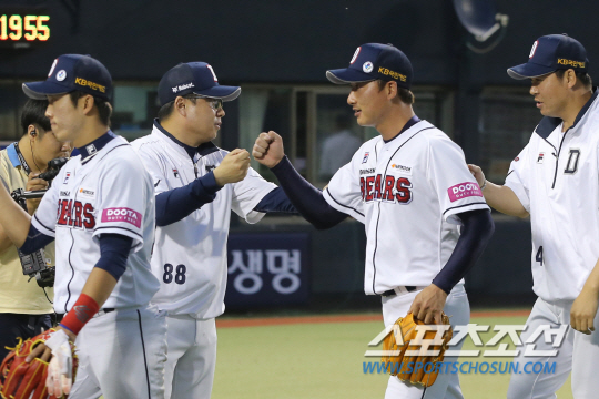 물론 두산이라고 올 시즌 위기가 없던 건 아니다. 8월 6일과 8월 10일 NC 다이노스에 1위 자리를 내주며 2위로 떨어졌다. 전반기 내내 전성기 못지 않은 피칭을 한 정재훈은 오른 팔뚝 수술을 받았다. 안방마님 양의지는 헤드샷으로 한 동안 전열에서 이탈했다. 이 때 두산은 '화수분 야구'를 앞세워 주축 투수의 공백을 훌륭히 메웠으나 수장의 속이 까맣게 탄 건 당연했다.