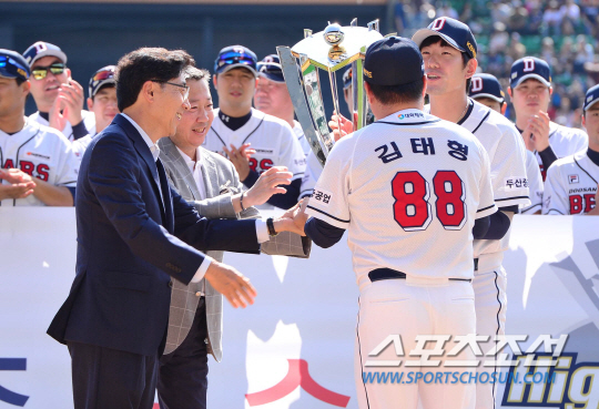 이미 큰 줄기는 결정난 경기다. 1위 두산은 정규리그 1위를 결정했고, 이날 경기전 정규리그 1위 축하 이벤트도 열었다. 박정원 두산그룹 회장(구단주)도 참석했다. 한화도 시즌 운명이 어느정도 갈렸다. 9년 연속 포스트시즌 진출이 좌절됐다. 김성근 한화 감독은 이날 경기전 "순위는 순위지만 기본에 충실하자고 했다. 플레이 하나 하나에 집중하자고 선수들에게 말했다"고 강조했다.