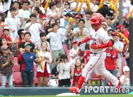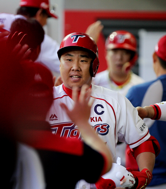 지난 1월 해외전지훈련 출발을 앞두고 주장에 재선임된 이범호(35)는 다소 부담스러운 듯 했다. 두번째 FA(자유계약선수) 계약을 한 첫 시즌이었고, 주장을 계속 맡아왔기에 후배에게 주장자리를 넘기고 싶었다고 했다. 코칭스태프에 주장 후보로 추천까지 했다. 무거운 책임감에서 벗어나고 싶은 마음이 컸지만 쉽게 내려놓을 수가 없었다. 리빌딩과 일정 수준의 성적, 두 가지를 모두 추구하고 있던 김기태 KIA 타이거즈 감독은 '캡틴 이범호'가 필요했다. 대다수 베테랑 주축 선수가 애리조나 훈련기간에 국내 개인훈련을 하다가 일본 캠프에 합류했는데, 이범호는 40일이 넘는 스프링캠프 내내 선수단과 함께 했다. 선수단을 이끌어가는 '주장 리더십'은 시즌 내내 경기장에서도 이어졌다. 그는 득점 찬스에서 무서운 집중력을 발휘해 팀 공격에 힘을 불어넣고 있다.