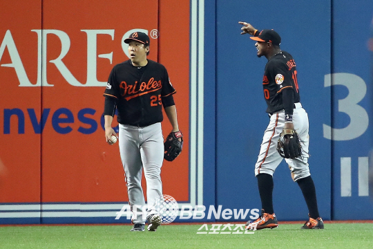 다행히 김현수는 캔에 맞지 않았다. 안정적으로 공을 잡으며 이닝을 끝냈다. 그러나 선수들은 흥분을 감추지 못했다. 김현수는 물론 중견수 아담 존스도 처음 겪는 일에 황당하다는 반응이었다. 벅 쇼월터 볼티모어 감독 역시 외야까지 달려가 심판에게 항의했다.