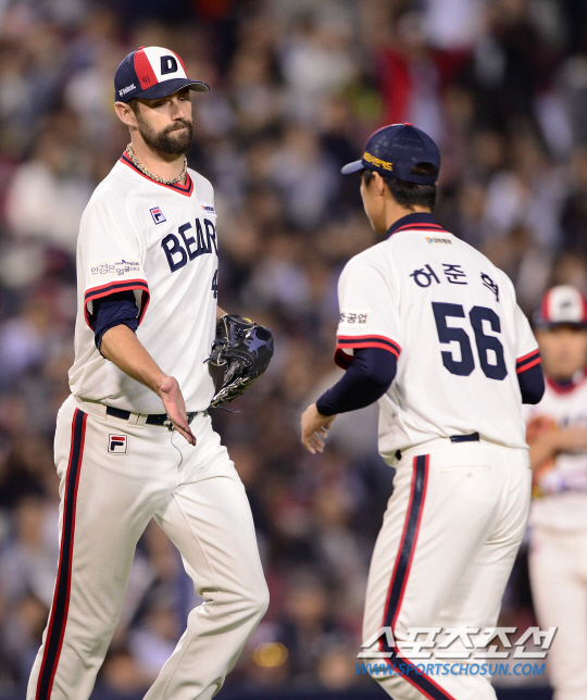 에이스 더스틴 니퍼트는 22승에 성공했다. 다니엘 리오스가 갖고 있던 구단 한 시즌 최다승 기록과 타이다. 니퍼트는 4회 2사 1,2루에 등판해 2⅓이닝을 2안타 1실점으로 막았다. 실점 과정에서는 야수 실책이 나와 비자책이다. 이로써 그는 다승(22승), 평균자책점(2.95), 승률(0.88) 1위를 확정했다. KBO리그 6번째 시즌을 맞아 첫 3관왕이다.