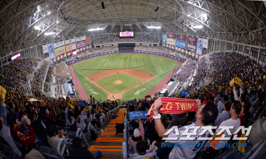 2016 KBO 포스트시즌 준플레이오프 1차전 LG와 넥센의 경기가 13일 오후 고척 스카이돔에서 열렸다. 많은 관중들이 야구장을 찾아 경기를 관전하고 있다. 고척돔=김경민 기자 kyungmin@sportschosun.com