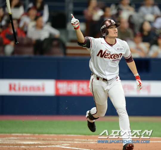넥센 히어로즈 임병욱의 홈런이 터졌다. 올해 포스트시즌 첫 홈런포다.