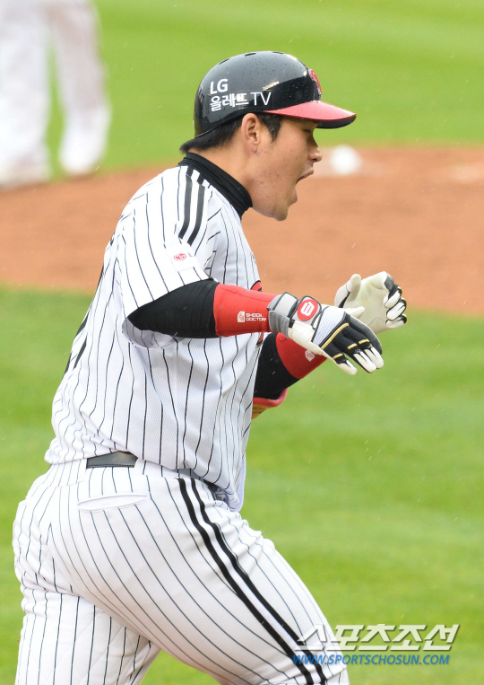 2016 프로야구 KBO리그 준플레이오프 3차전 LG트윈스와 넥센 히어로즈의 경기가 16일 서울 잠실야구장에서 열렸다. LG 4회말 2사 2루에서 유강남이 중월 투런홈런을 치고 그라운드를 돌고 있다. 잠실=최문영 기자 deer@sportschosun.com /2016.10.16/
