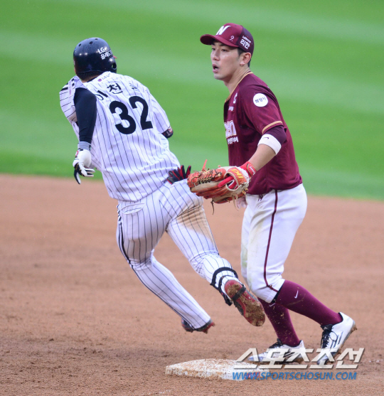 선취점이 중요한 경기. LG가 찬스를 놓쳤다. 0-0던 3회였다. 선두 타자 손주인의 중전 안타, 김용의의 희생 번트, 이천웅의 볼넷으로 만든 1사 1,2루. 후속 박용택이 몸쪽 낮은 슬라이더에 헛스윙 삼진 당했다. 원바운드 된 유인구를 참지 못했다. 타석에는 4번 히메네스. 첫 타석에서 3루수 땅볼로 물러났지만 이번에는 달랐다. 볼카운트 1B에서 유격수 쪽으로 강한 타구를 날렸다. 하지만 넥센 유격수 김하성이 기막힌 수비로 그 공을 낚아챘다. 내야 안타를 막을 수 없었으나 좌익수까지 굴러가는 상황은 차단했다. 그런데 여기서 3루 주자 손주인이 협살에 걸려 아웃됐다. 김하성이 공을 잡기 직전 이미 3루 베이스를 돌았고, 그 탄력과 스피드를 이기지 못해 귀루에 실패했다.