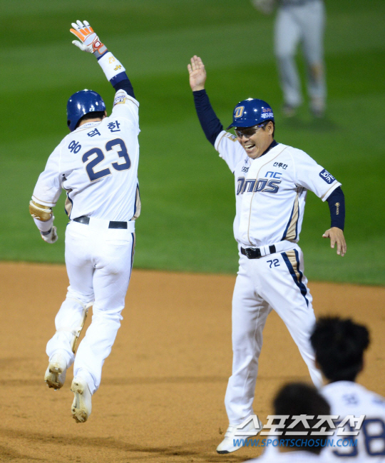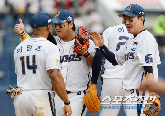 김경문 감독은 1차전 극적인 승리 후 모든 공을 선수들에게 돌렸다. 그리고 "행운이 따라주었다"고 했다. 결과적으로 승리로 끝나서 김 감독은 웃을 수 있다. 하지만 테임즈의 공백을 메우는 차원에서 깜짝 카드로 내민 '4번 권희동' 선택은 9회 권희동이 좌전 안타를 치기 전까지만 해도 실패로 흘렀다. 권희동은 이전 세번의 타석에서 모두 범타에 그쳤다.