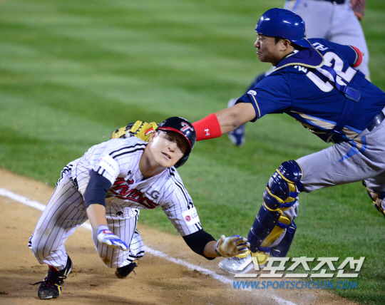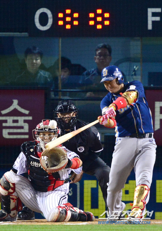 김태군의 이날 타격감은 절정이었다. 유일하게 신들린 듯 LG 선발 투수 류제국을 괴롭혔다. 혼자 2안타를 쳤다.