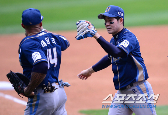 그는 1회 오재일의 잘맞은 안타성 타구를 시프트 수비로 땅볼 아웃 처리했다. 평소 서는 수비 위치 보다 제법 뒤로 물러나 수비한 게 주효했다. 고질적이었던 1루 송구도 매우 정확했다.