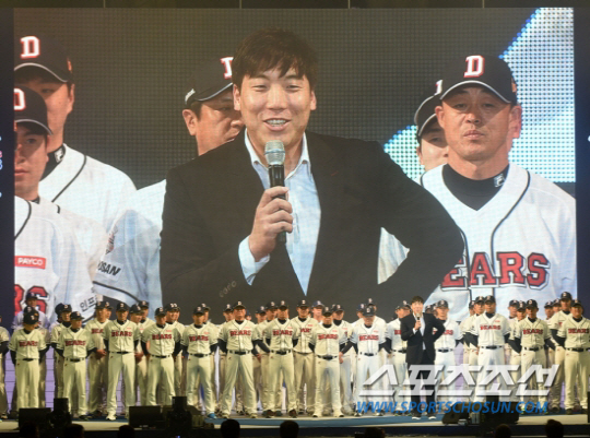 21년 만의 통합 우승. 또 2년 연속 한국시리즈 우승을 노리는 두산 베어스. 28명의 선수단, 코칭스태프가 하나로 뭉쳤다. 보이지 않는 곳에서 아낌없이 지원하는 프런트, 관중석을 가득 메운 팬들도 우승을 기도한다. 이뿐만이 아니다. 이제는 메이저리거가 된 김현수(볼티모어 오리올스), 끝내 부상으로 엔트리 진입이 무산된 투수조 최고참 정재훈도 두산을 응원하고 있다.