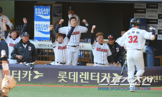 두산이 침묵을 깼다. 자세한 상황을 볼 필요가 있다. 선두 민병헌의 타구. 살짝 배트 안쪽에 맞았다. 좌전안타. 텍사스성이 섞여 있었지만, 민병헌의 타격 실력이 좋았다.