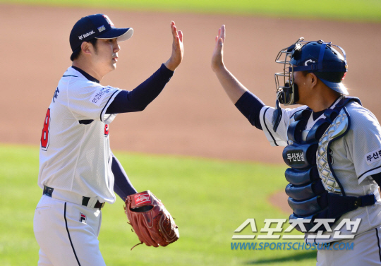 한국시리즈 2경기에서 20이닝 1실점, 평균자책점 0.45. 두산 베어스 구단 내부에서도 깜짝 놀란 완벽투다. 두산의 선발-불펜진은 나성범-에릭 테임즈-박석민-이호준으로 이어지는 NC 다이노스의 '나테박이'를 압도했다. 다이노스 타선의 핵인 '나테박이'는 2경기에서 타점-득점없이 29타수 4안타, 타율 1할3푼8리에 그쳤다. 두산 팀 평균자책점 0.45, '나테박이' 타율 1할3푼8리. 한국시리즈 1~2차전을 함축해 보여주는 기록이다. 두산 마운드가 2연승의 발판을 놓았다.