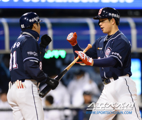 두산 타선은 NC 선발 최금강을 상대로 2점을 뽑는데 그쳤다. 한국시리즈 3경기를 했지만 여전히 타선이 매끄럽게 터졌다고 보기는 어렵다. 김재환의 1점 홈런이 아니었다면, 중후반까지 '0'의 행진이 이어졌을 가능성이 높았다. 두산은 5회 마구 흔들린 NC 투수진을 상대로 2점을 뽑는데 그쳤다. '빅이닝'을 만들 수 있는 찬스에서 카운터 펀치를 날리지 못했다.