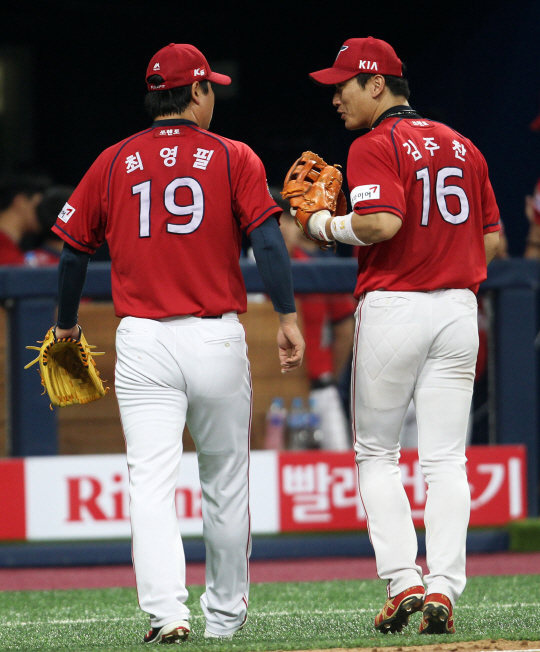 경희대를 졸업한 최영필은 1997년, 단국대 출신인 김원섭은 2001년 각각 현대 유니콘스, 두산 베어스에서 프로 생활을 시작했다. 내년이면 최영필이 프로 21년차, 김원섭은 17년차가 된다. KBO리그 전체를 봐도 최고 베테랑급이다. 최영필은 2014년 이적해 지난 3년간 타이거즈 불펜의 주축 멤버로 활약했다. 두산에서 옮겨온 김원섭은 2003년부터 타이거즈 유니폼을 입고 있다. 프로 입단 동기생, 비슷한 나이대 선수 대다수가 현역에서 은퇴를 했고, 코치로 일하고 있는데 둘은 여전히 현역이다.