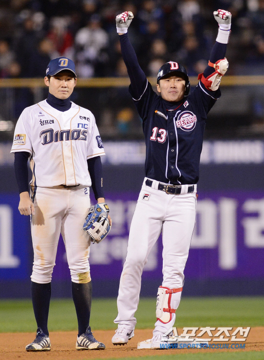 허경민은 이번에도 빈손이었다. 지난해 단일 포스트시즌 최다 안타(23개)를 작성하고도 빈손에 그쳤던 두산 주전 3루수. 올 KS에서도 17타수 6안타 타율 3할5푼3리에 5타점으로 맹활약했지만 데일리 MVP조차 받지 못했다. 그의 5타점은 이번 KS에서 개인 최다 타점이지만 상복은 없었다. 하지만 아쉬움도 잠시, 2년 연속 우승으로 사람 좋은 웃음을 짓는 그다. 특히 시리즈 준비 기간 타격감이 뚝 떨어졌기 때문에 안타 1개, 타점 1개가 감사할 뿐이다. 그는 KS 1차전 결승 득점을 올린 소감을 묻자 "청백전과 일본 연습 경기에서 안타 1개도 못쳤다. 이날 처음 주루 플레이를 해봤다"며 "우려와 달리 타석에서도 공은 잘 보인다. 이 공이 직구인지, 변화구인지, 커터인지, 뭔지 잘 몰라서 그렇지"라고 말해 웃음을 선사했다.