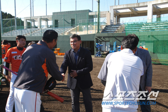 박종훈 한화 단장은 11일 선수단이 마무리훈련중인 일본 미야자키에 도착했다. 공항에서 곧바로 훈련장인 기요타케 종합운동공원을 찾은 박 단장은 김성근 감독부터 만났다. 12일 요미우리와의 연습경기를 앞두고도 두 사람은 경기시작 직전까지 그라운드에서 대화를 이어갔다. 박 단장은 "이번 미야자키 방문 목적은 딱 하나다. 감독님과 많은 대화를 하는 것"이라고 말했다.