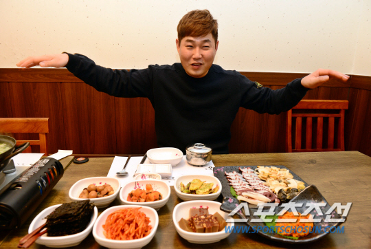 무뚝뚝한 표정은 오해. 알고보면 누구보다 잘 웃고 또 유머 감각도 있는 '광주 사나이' 양의지와 최근 서울 서초동에 위치한 한 해산물 전문점에서 만났다. 문어 숙회, 대구탕으로 차려진 푸짐한 밥상을 앞에 두고 진솔한 이야기를 나눴다.