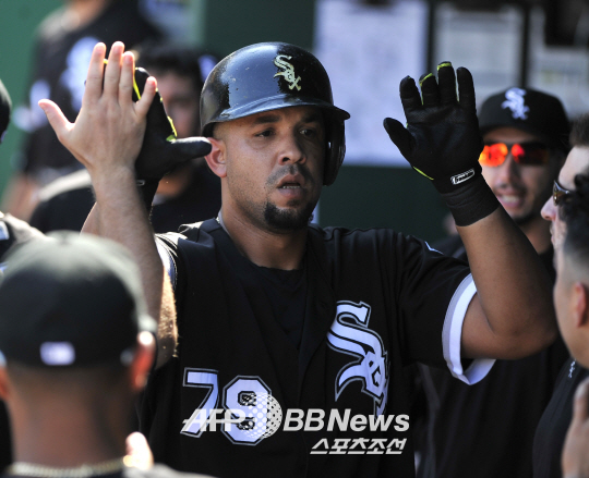 시카고 화이트삭스가 1루수 호세 아브레이유가 내년 연봉 1082만5000달러에 재계약했다. 지난 9월 20일(한국시각) 캔자스시티 로열스전에서 홈런을 친 아브레이유. ⓒAFPBBNews = News1