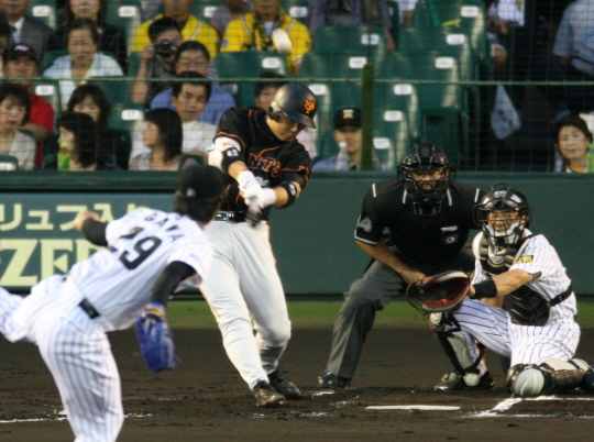 요미우리 이승엽이 12006년 9월 7일 한신전에서 상대 투수 이가와로부터 투런 홈런을 치고 있다. 스포츠닛폰 본사제휴