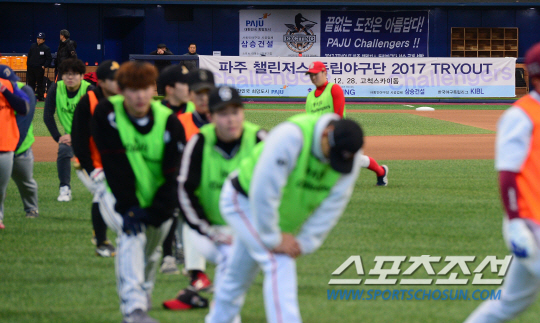 연천 미라클에 이어 두 번째 독립구단이 창단 작업을 진행하고 있다. 파주 챌린저스가 28일 서울 고척 스카이돔에서 트라이아웃을 열었다. 61명(투수 25명, 포수 4명, 야수 32명 )의 선수가 참가해 입단 테스트를 받았다. 창단 작업에 참여한 우수창 독립리그추진위원장은 "당초 25명을 뽑을 예정이었는데, 인원수를 늘려야 할 것 같다. 선수들의 열정과 의욕이 대단하다"고 했다. 트라이아웃 참가 선수 중 15명은 프로를 경험했고, 나머지는 프로 진출을 꿈꾸는 아마추어 선수 출신이다.