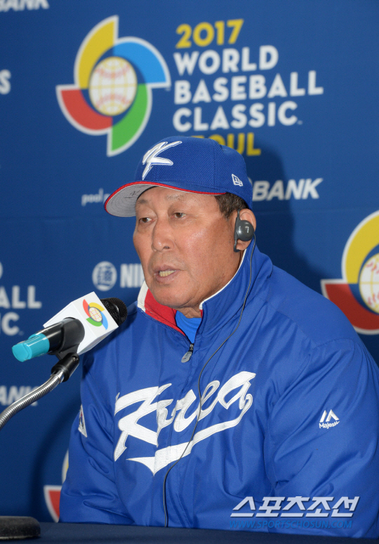 2017 월드베이스볼클래식(WBC) 한국대표팀이 5일 고척스카이돔에서 훈련을 가졌다. 훈련 후 진행된 기자회견에서 김인식 감독이 질문에 답하고 있다. 고척돔=허상욱 기자 wook@sportschosun.com